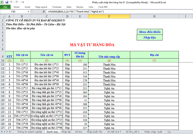 - Danh mục vật tư hàng hóa: Danh sách thống kê hàng gồm mã hàng, tên hàng, các đặc điểm quy chuẩn của từng hàng hóa