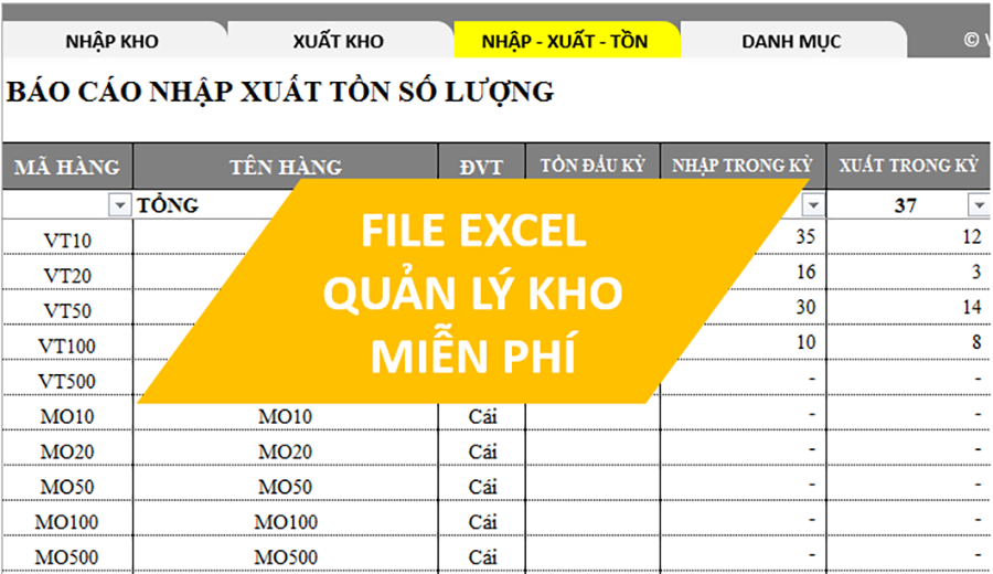 Mẫu file excel quản lý kho đơn giản miễn phí